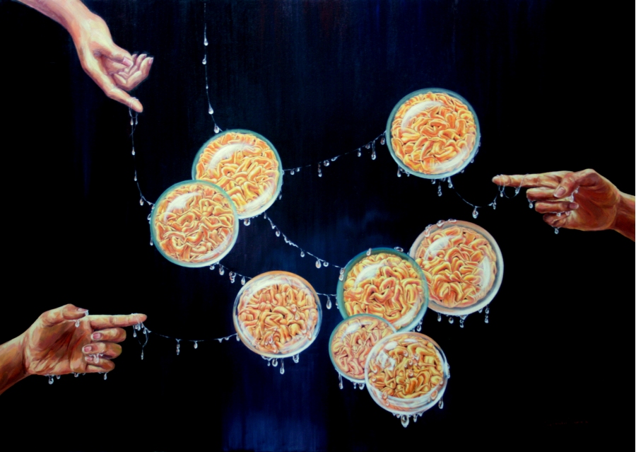She leads her artworks into surrealistic direction, which makes her totally free and imaginative to paint what she feels and thinks.