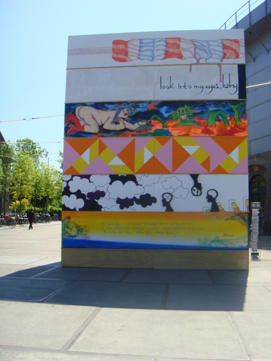 Sandberg Institute and Keep an Eye Foundation initiated a life painting visual art project ‘ Keep an Eye Pavilion ONTHEWALL’. This artwork was presented during the Art Pie (Kunstvlaai) Manifestation Amsterdam 2010.
