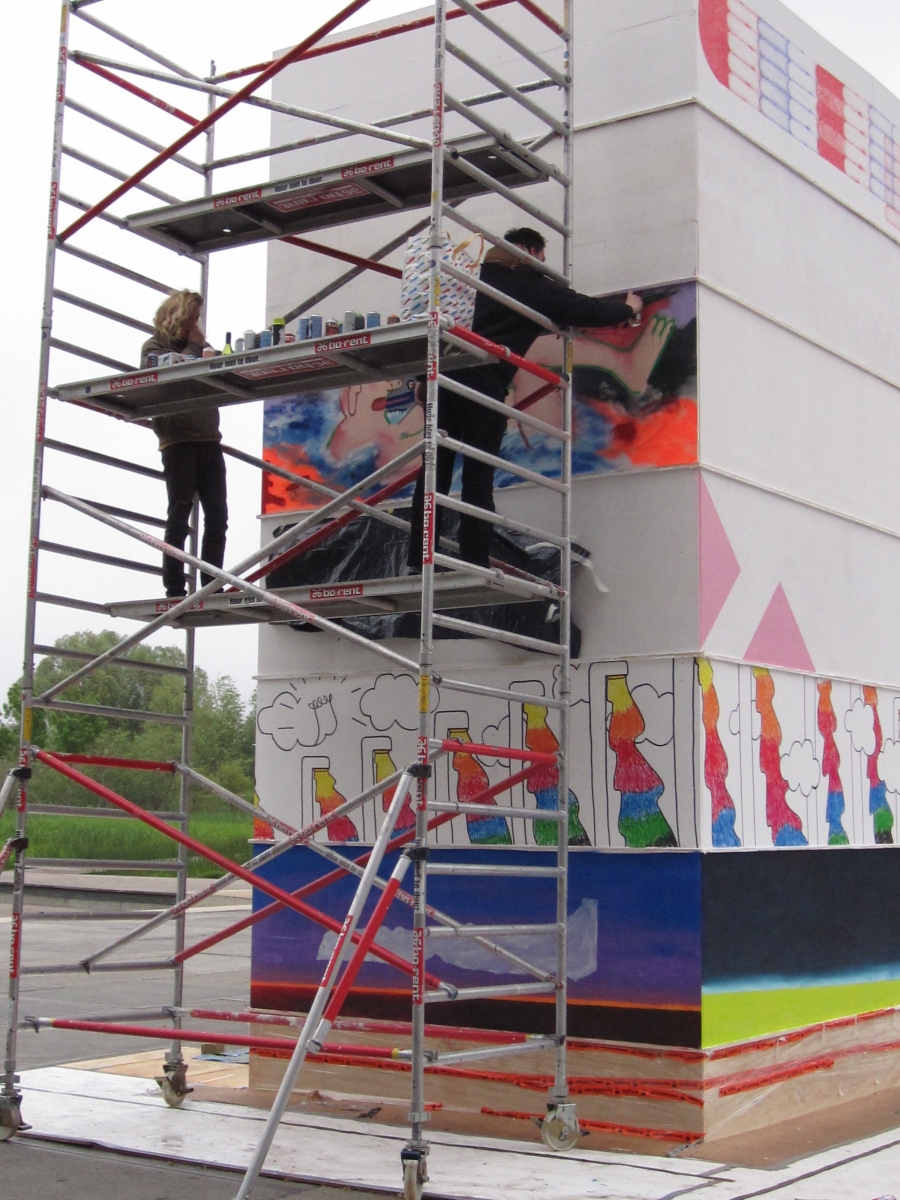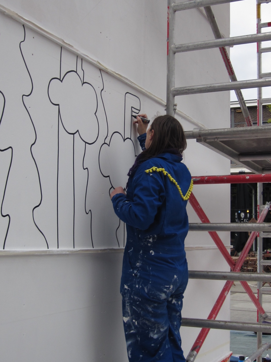 This concept was developed in collaboration with Gijs Frieling. This well known visual artist is an authority in the field of mural art in the Netherlands. He has many awards including the Royal Prize for the Prix de Rome and was winner of the Cobra Art Prize 2009. At the last opportunity a large exhibition was organized in the Cobra Museum.